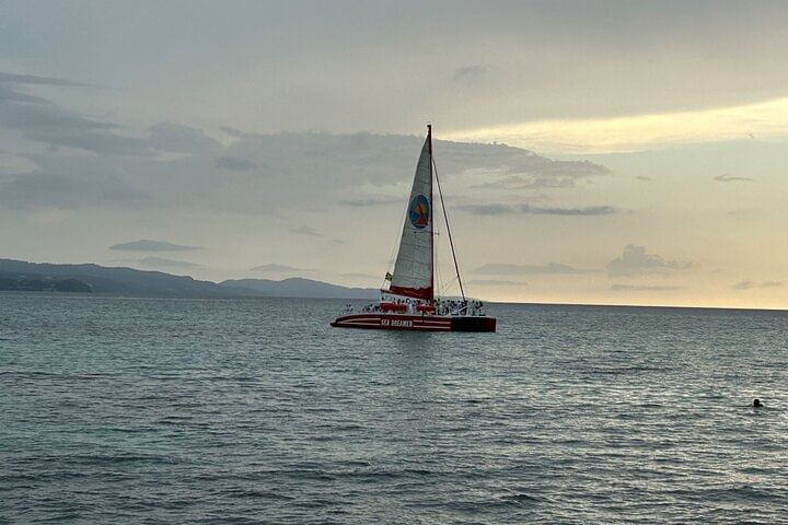 Embark on an unforgettable catamaran cruise where relaxation meets adventure on the open sea. Enjoy sunbathing on the spacious deck, sip on refreshing beverages, and take in panoramic views of stunning coastlines and marine life. Dive into crystal-clear waters for snorkeling and also swim in the pristine blue Caribbean Sea. As the day winds down, witness a breathtaking sunset, casting a golden hue over the horizon. This cruise offers the perfect blend of relaxation, exploration, and indulgence, promising an unparalleled experience on the water. Book now for a journey that will leave you with memories to cherish forever.