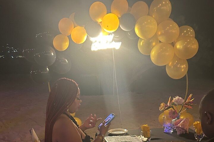 Our Dinner Experience and Celebration on the Beach with Decorations is more than just a meal—it’s a personalized escape where the ocean becomes your backdrop and the stars your ceiling. Designed for birthdays, anniversaries, honeymoons, or any special occasion, this intimate beachfront setting comes complete with custom décor such as candles, flowers, and balloons to match your celebration. From the moment we arrange your pickup to the time you step onto the sand, everything is tailored for a stress-free, romantic, and picture-perfect evening. It’s not just dinner, but a one-of-a-kind celebration that blends Jamaica’s natural beauty with elegance, creating unforgettable memories you’ll cherish forever.
